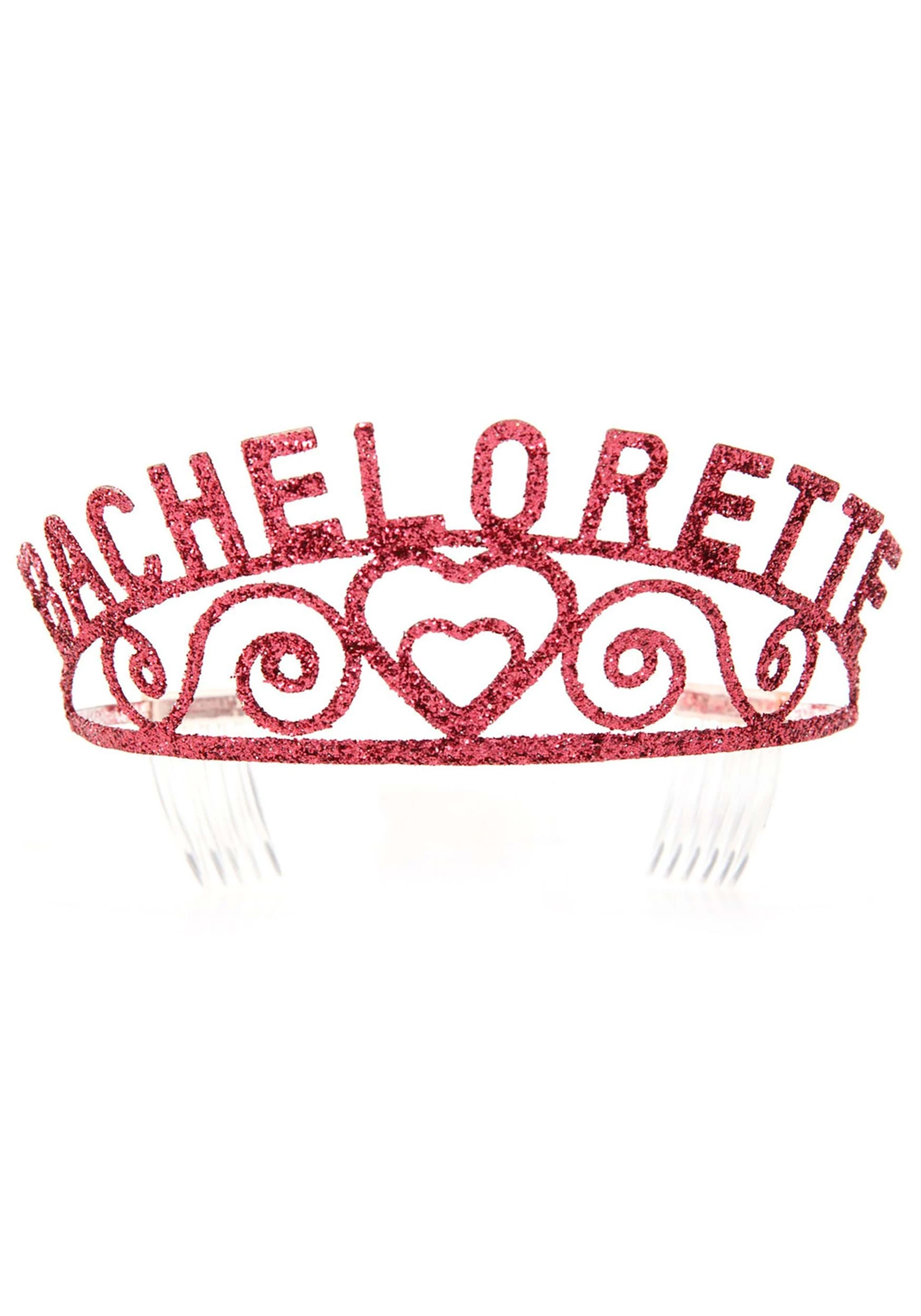 This glittery pink piece is a no-brainer for your big night out. Simply slide it in place using the attached combs, and it’ll stay in place all night long! The word BACHELORETTE is situated about scrolling hearts, placing you in the spotlight.